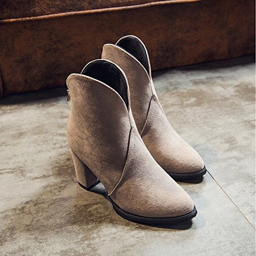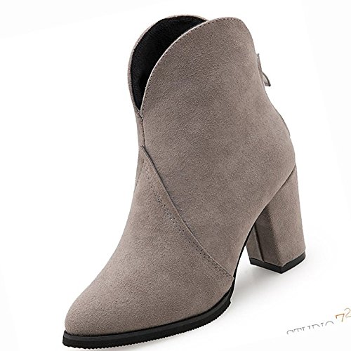 (WKIDWX)/Women's/Boots/DIRECT FROM USA/Women's Shoes PU Winter Comfort Fashion Boots Boots Chunky Heel Pointed Toe For Casual Gray Black
