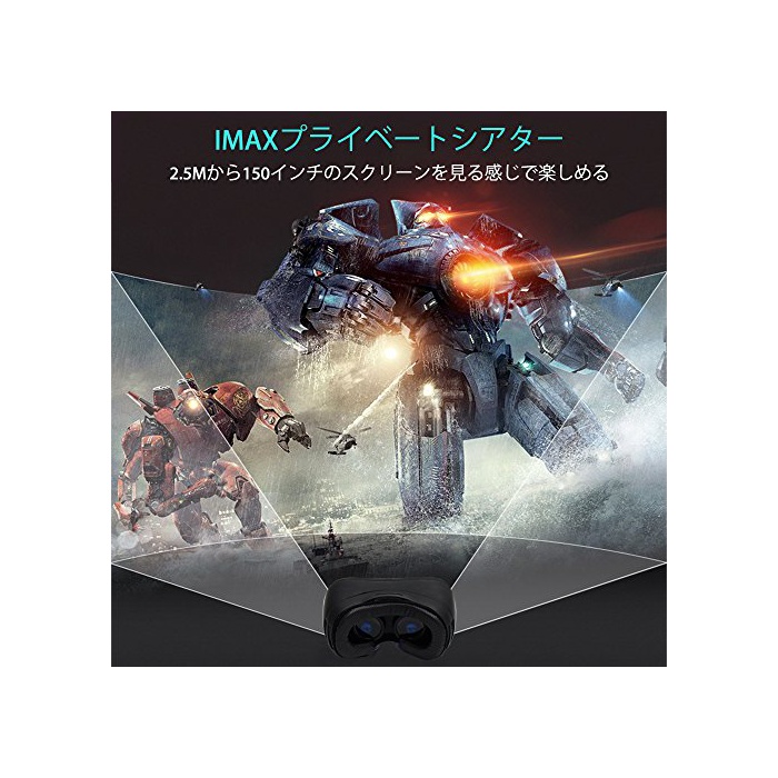 다른 세계가 퍼지는 몰입감:HD디스플레이와 110°의 넓은 시야각은 극장에 앉아 2.5m부터 150인치의 스크린을 보는 감각입니다.간편하게360도의 VR체험 수 있고마치 자신이 다른 세계에 있는 것 같은 경악 적인 몰입감을 맛볼 수 있습니다.