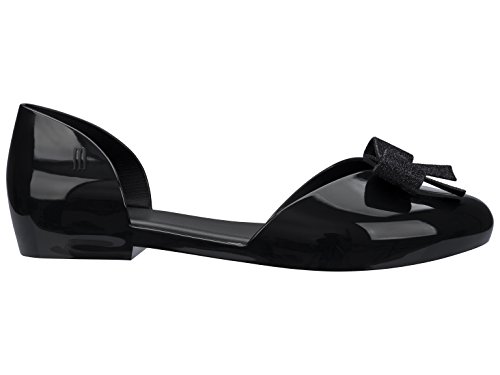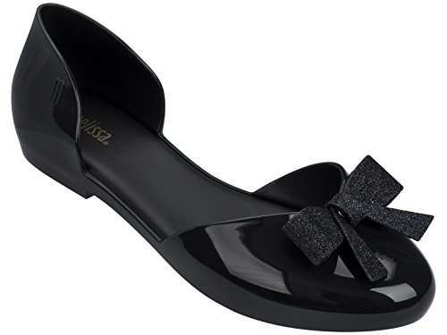 Product DescriptionA glitter bow details the vamp of these d'orsay Melissa flats. A padded footbed adds comfort. Rubber sole.0