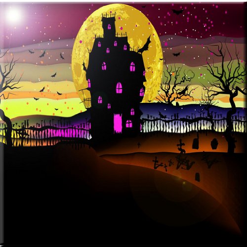 Rikki Knight RK-8intilec-8908 8" X 8" Grungy Halloween with Haunted House Design Ceramic Art Tile