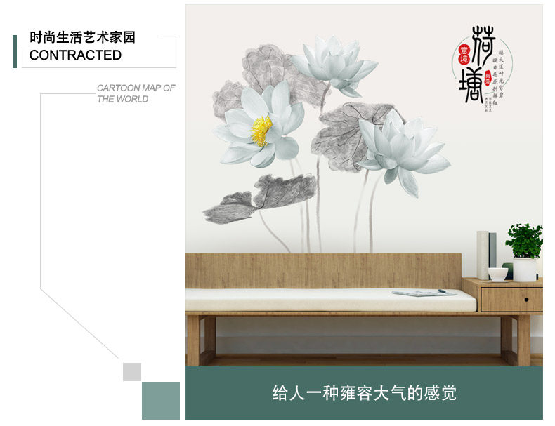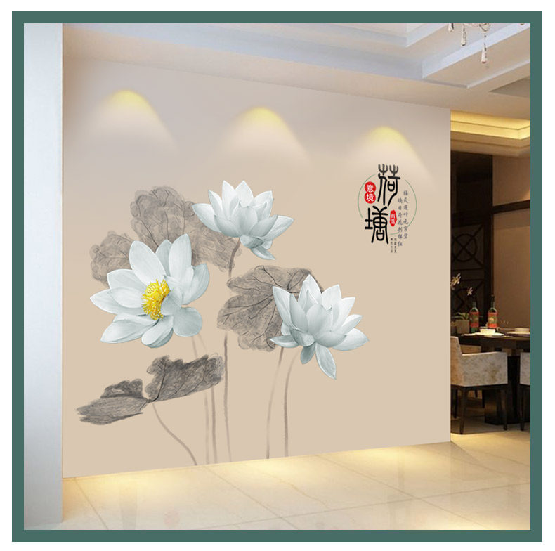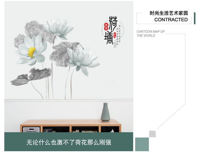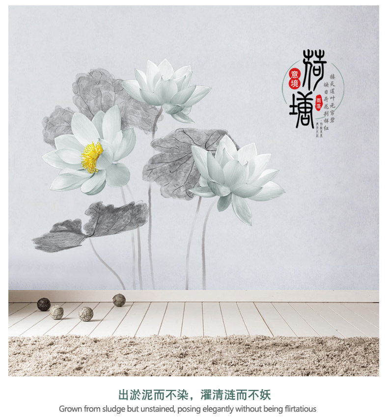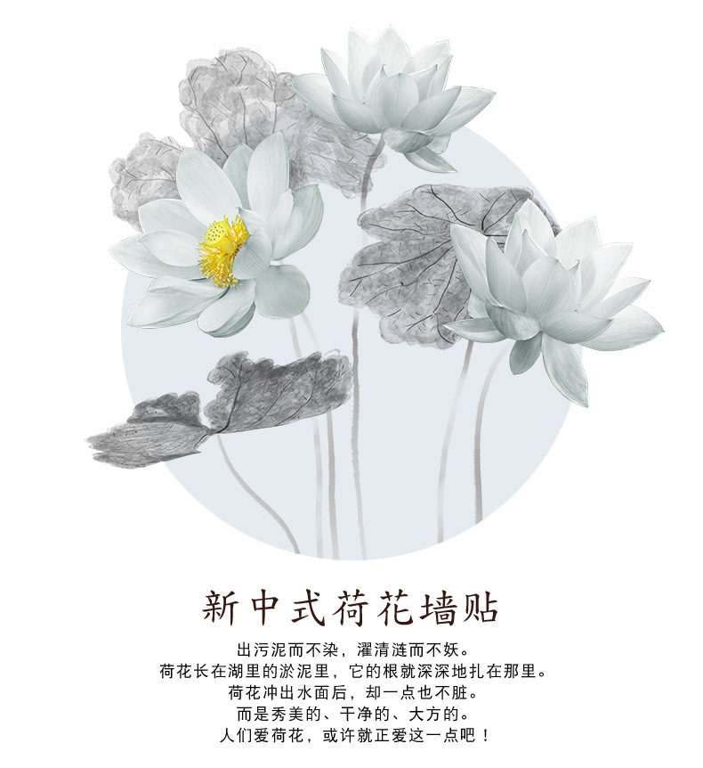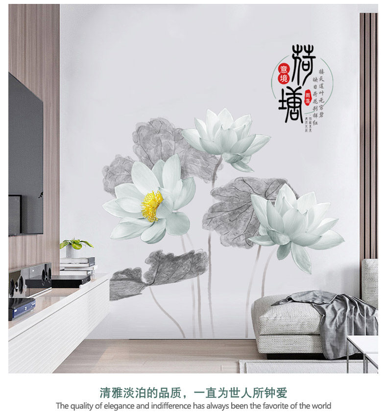 中国风墙纸自粘房间装饰背景墙客厅墙上贴画荷花壁纸自粘壁纸贴纸