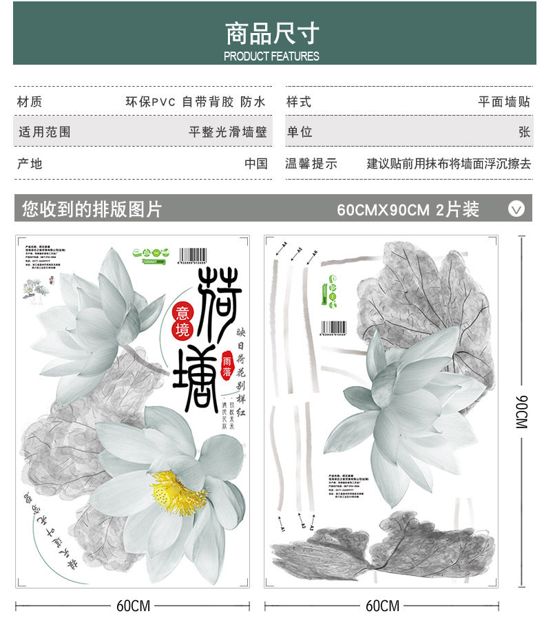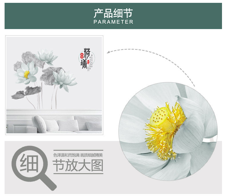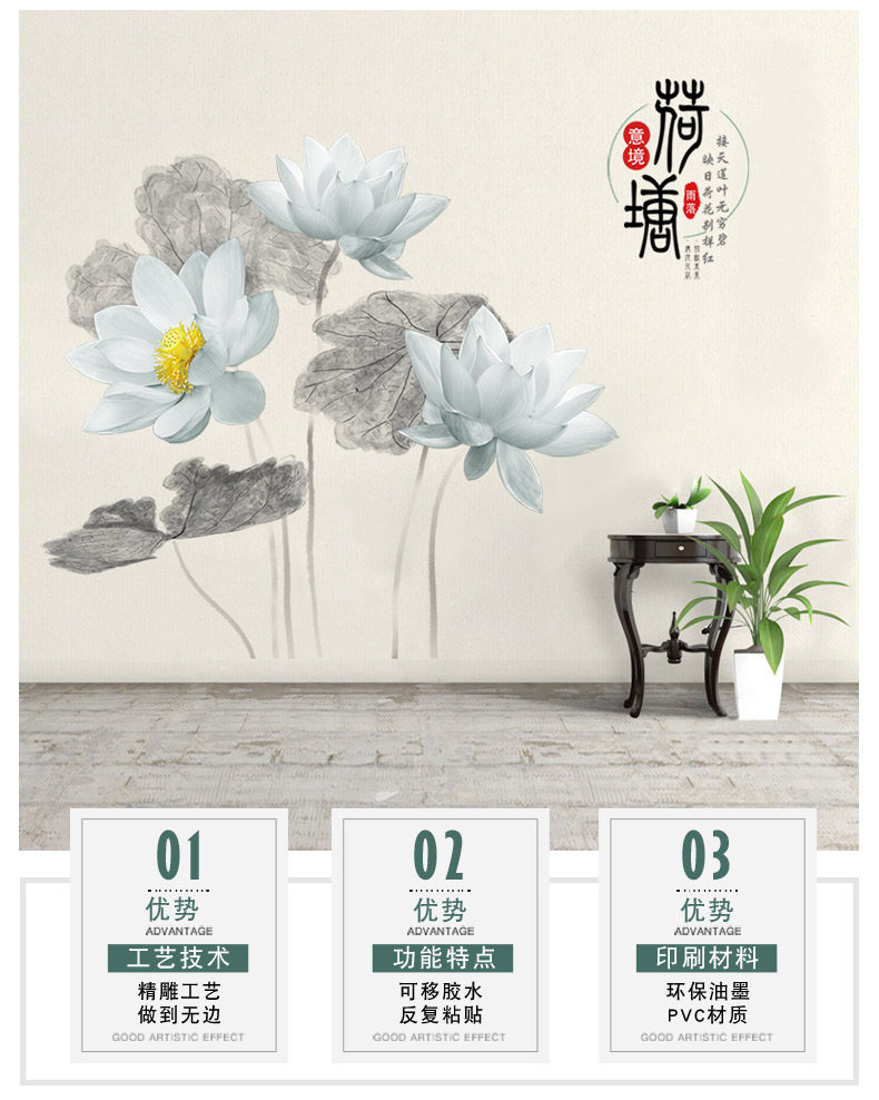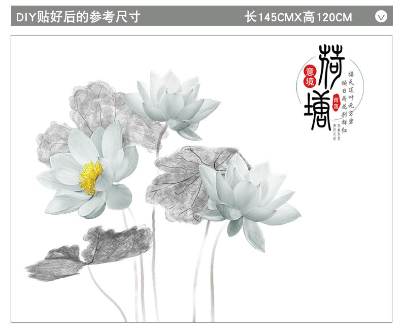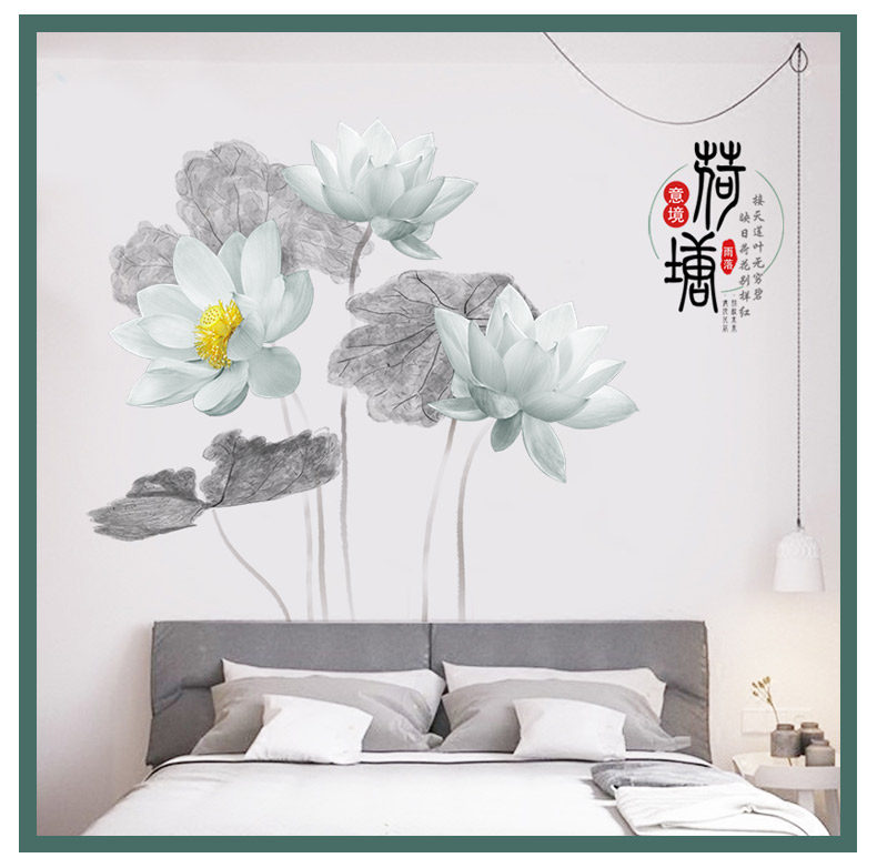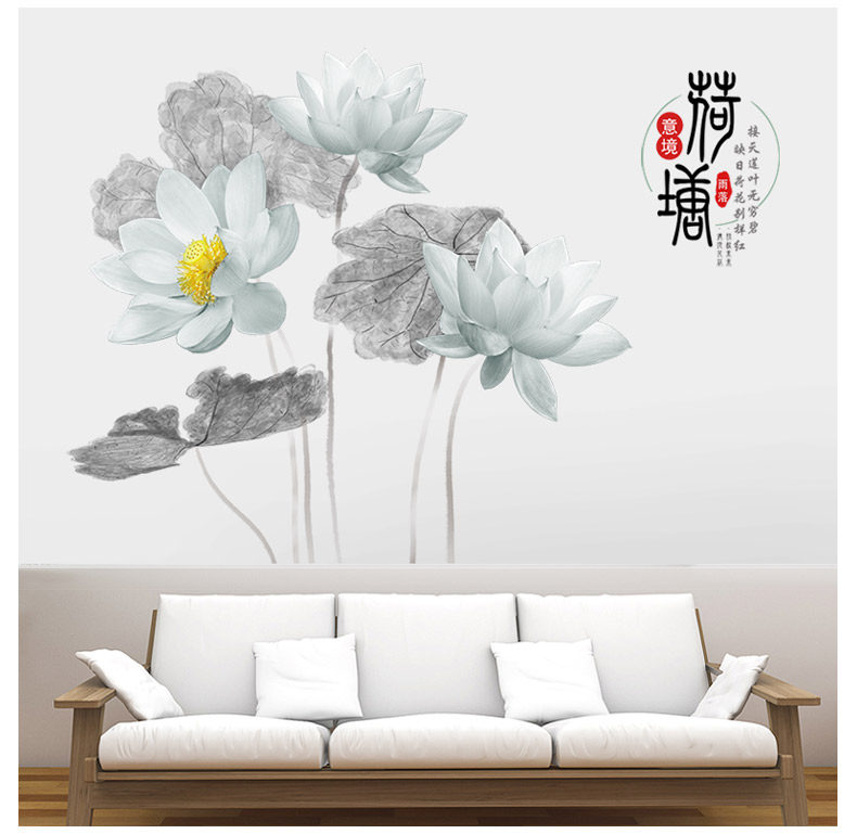 中国风墙纸自粘房间装饰背景墙客厅墙上贴画荷花壁纸自粘壁纸贴纸