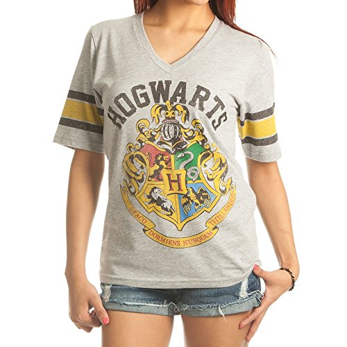 (Bioworld)/Accessories/Belts Buckles/DIRECT FROM USA/Harry Potter Hogwarts Crest V-Neck Jersey Juniors T-Shirt New Licensed