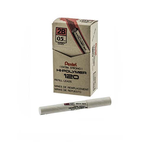 Pentel Super Hi-Polymer Lead 0.5 mm Mechanical Pencil, Fine, 2B, Box of 12 (C525-2B)