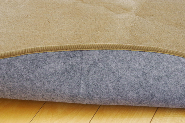 通常商品表地にはフランネルと呼ばれる、しっとりとして非常にやわらかい生地を使用しています。電気カーペットカバーとしても使用できます。フローリングを傷つけにくいよう裏には不織布を貼っています。
