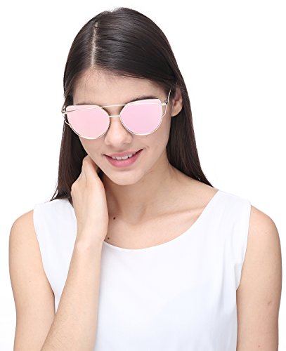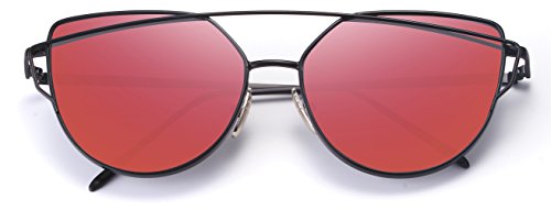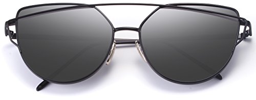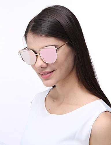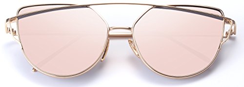 AOOFFIV Cat Eye Mirrored Flat Lenses Metal Frame Women Sunglasses.