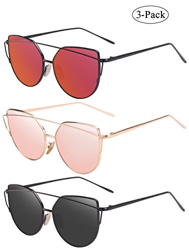 HIGH QUALITY MATERIALS - Solid metal frame in flat thin style makes the sunglasses firmer, extra flexibility and stability. Resin made HD lens in lightweight,scratch resistant, and high visible light perspective to make your vision clearer, reduce reflections.