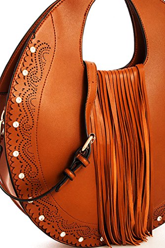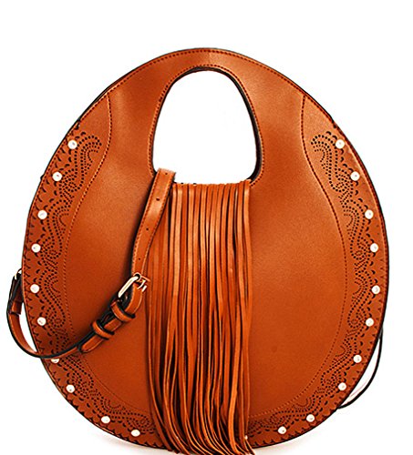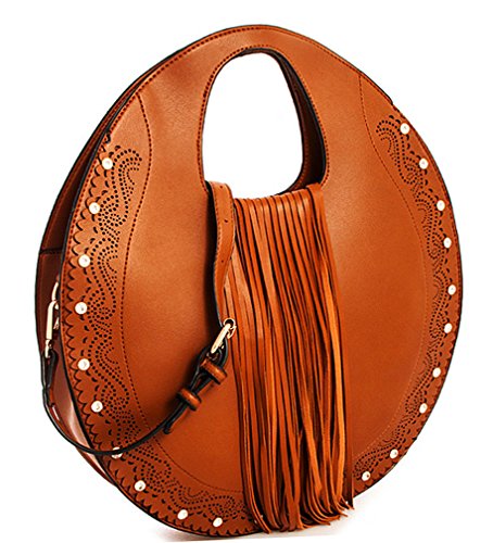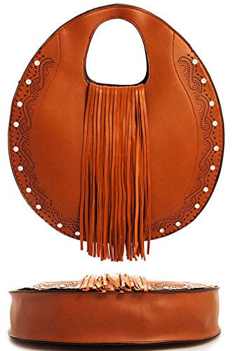 Studio : Western Fashion Publisher : Western Fashion Binding : Apparel Product Description Handbag REPUBLIC® Fringed Round Satchel w/ Rhinestone Accents Strap- Brown