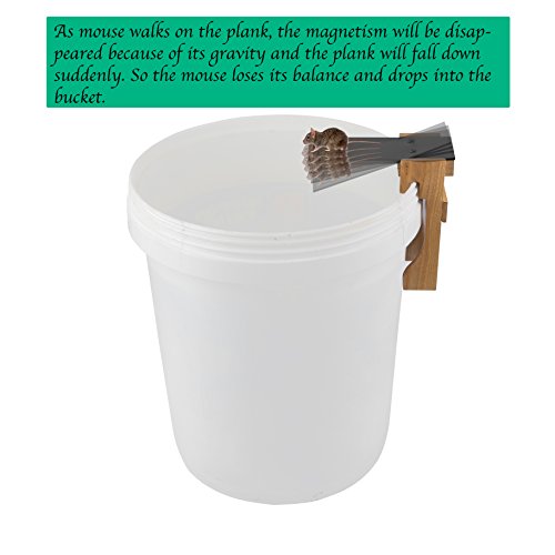 ✅ REUSABLE & EASY TO CLEAN - Counterbalance with block wood and inserted magnet provide the trap with resilience force and reusable possibility. It is also very easy to clean up both the trap and the bucket.
