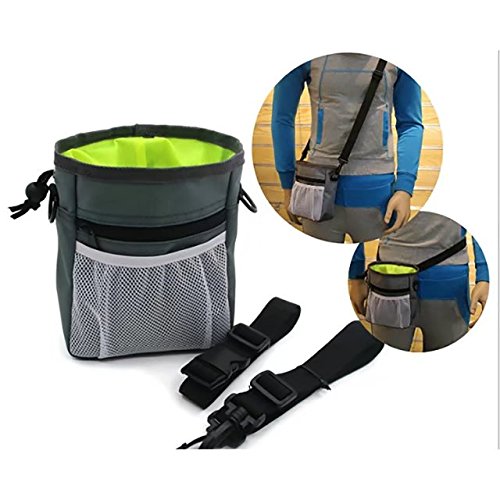 -. Feature : Large capacity: With this dog treat bag, you don't need to worry about where to put your dog's toy and food anymore. The outside pocket can carry your phone and key when you running. / With adjustable shoulder strap ,waist belt and the metal clip, can provide different positions for the keeper,and fits different body waist. / Drawstring closure enables you to adjust the size of the opening which you can choose to close it, open it wide or open it partially / Waste Bags Dispenser Pockets,can pull out the waste bag easily. / Soft and high quality material: Made of durable washable nylon material,waterproof interior,easy to clean.
