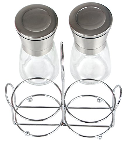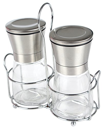 - Salt and Pepper Grinder Set with stainless steel lid,lid is the finest matte stainless steel that is resistant to corrosion,the bottle is glass,you could easy to see the salt or pepper