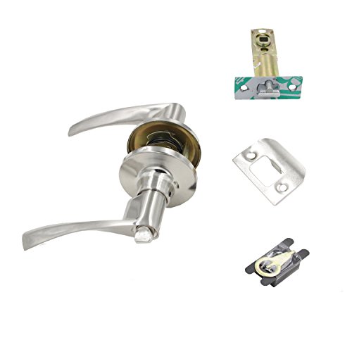 Product Description: The ALEKO levers wave style design is an attractive addition to any home. The crisp, clean appearance of the Nickel finish adds to the overall look of the product and brings a modern feel. This privacy lever is best used in interior bed and bath applications where privacy is required. The lever is locked or unlocked by turn button inside. The outside lever can be unlocked by an emergency key. Features: For use on interior doors where a privacy locking function is required, such as a bedroom or bathroom. Features an adjustable latch to fit all standard door preparations. Easily installs in minutes with just a screwdriver Zinc Alloy lever on Iron Rosette. Package includes: 1 x Privacy Door Lever with all fixings Thick Handle Fits door thickness of 1-3/8 in. to 1-3/4 in.Feature