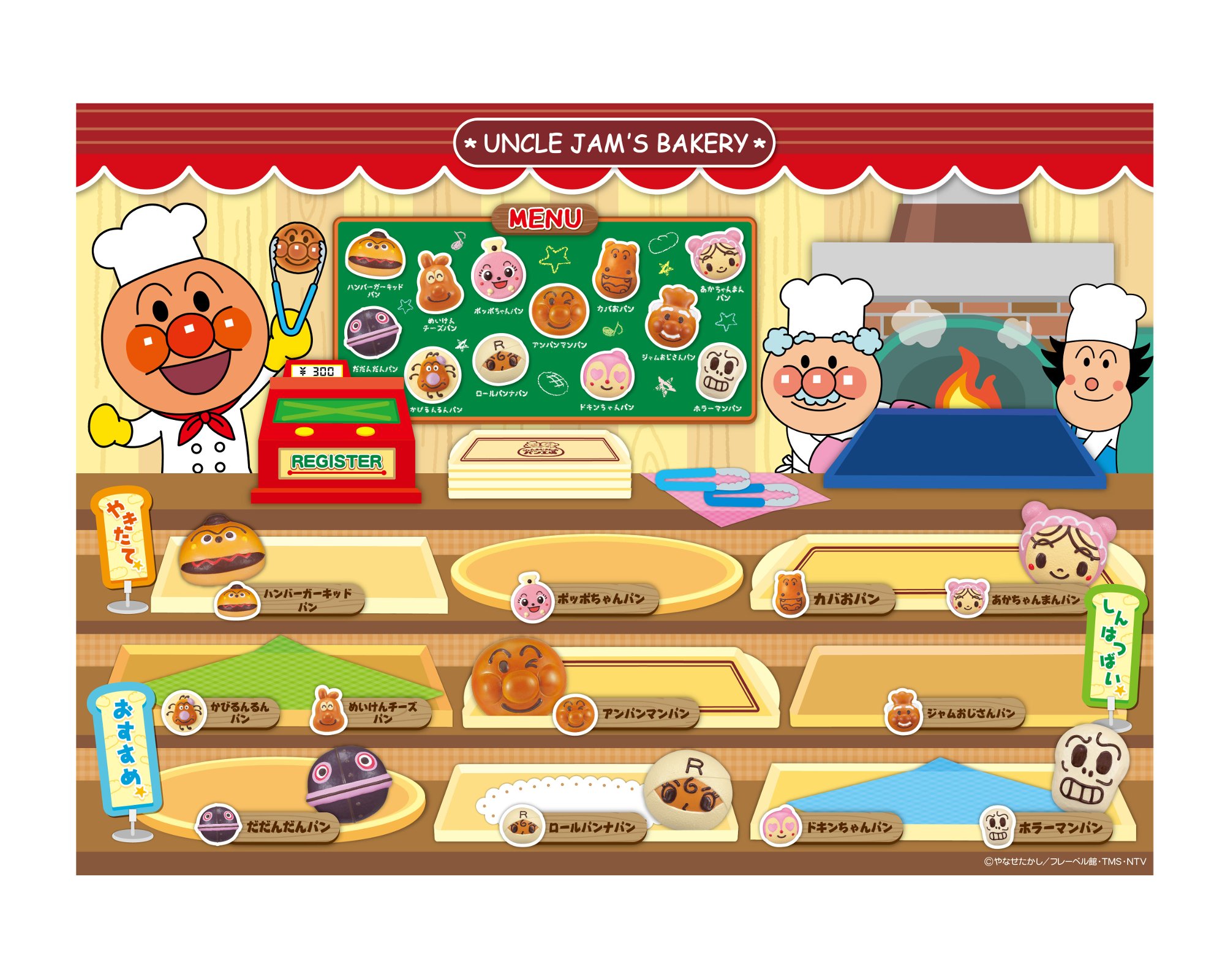 Uncle Jam's Uncle Bread Factory Adds New Character Bread to Anpanman Pan · Meiken Cheese Bread · Jam Uncle Pan · Hamburger Kid Pan · Roll Panna Pan · Horrorman Pan · Heart Eye Dokin Chan Bread Daddy Pan · Baby
