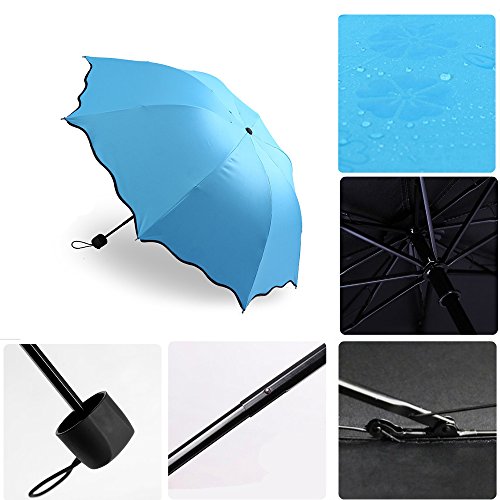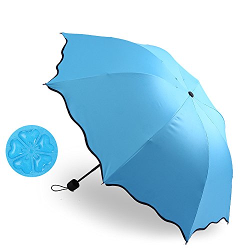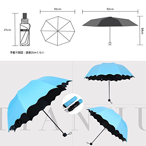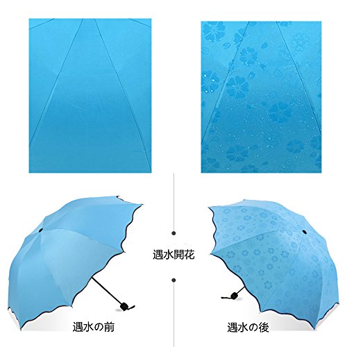 -. Title : ZK 折りたたみ傘 紫外線カット 遇水開花 晴雨兼用 男女兼用 丈夫 8本骨 耐風撥水 収納ケース付け 梅雨対策 頑丈高強度の安全傘 (ブルー)