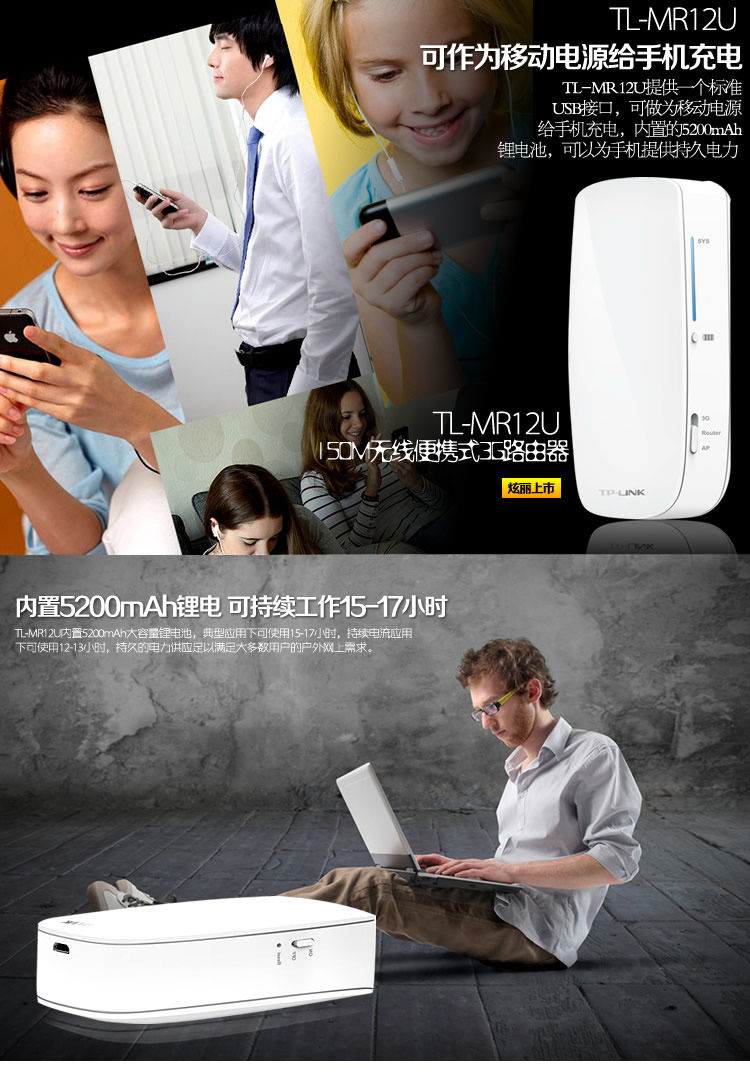 TP-LINK推出内置5200mAH锂电的便携式3G路由器TL-MR12U