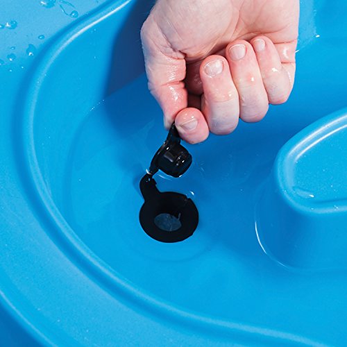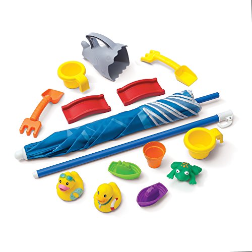 - Feature : Holds 10 lbs (45 kg) of sand and 3 gal (114 L) of water / Easy-to-use drain plug and durable one-piece plastic cover keeps sand clean & dry / Elastic tie-downs on ends of lid keep it securely attached / Molded-in roadways on the lid provide an additional play surface / Removable, 42" (1067 cm) umbrella provides shade