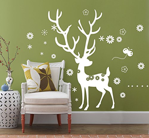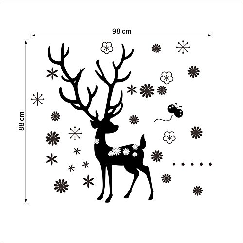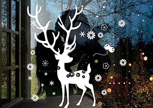 Cartoon Deer and Snowflakes Wall Stickers Window Decor for Kids Baby Nursery Decoration Peel and Stick White Wall Deacals,31.5x39.4"