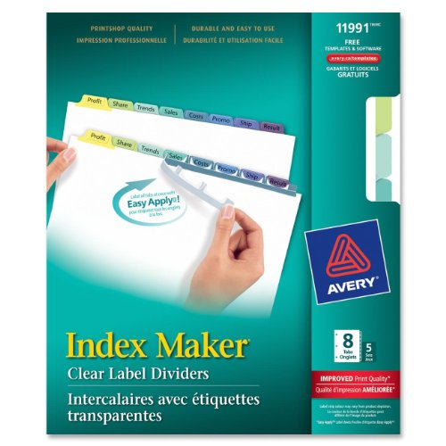 Avery Index Maker Dividers, 8-Tab, Multi-Color, 5 Sets (11991)