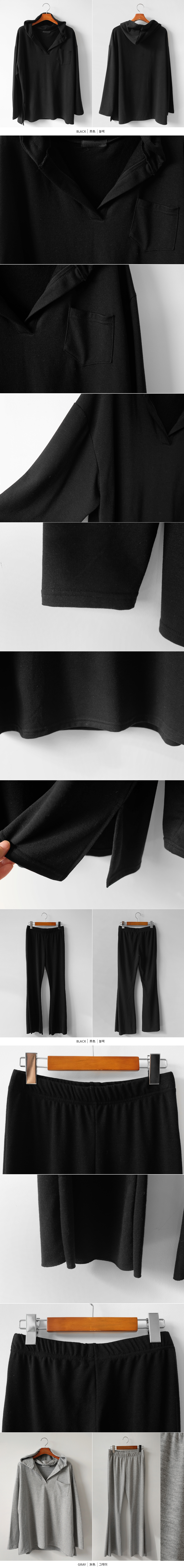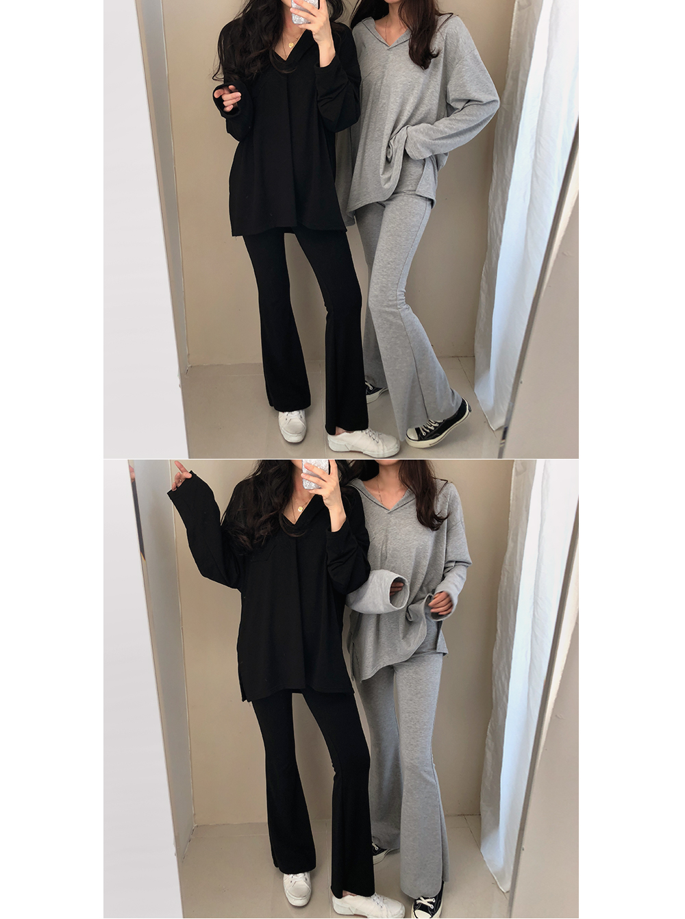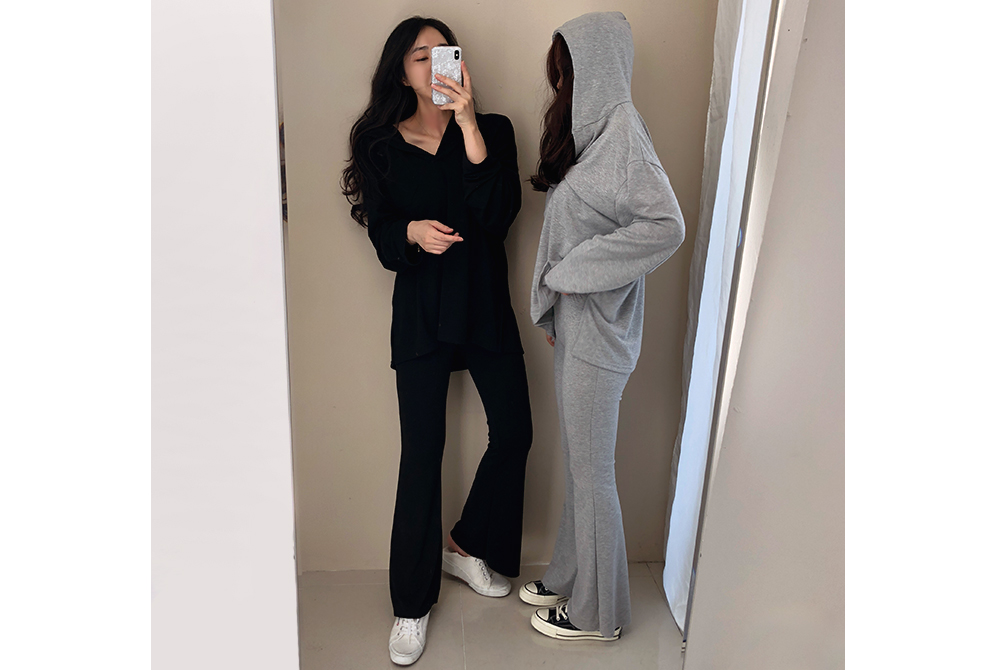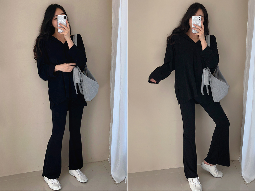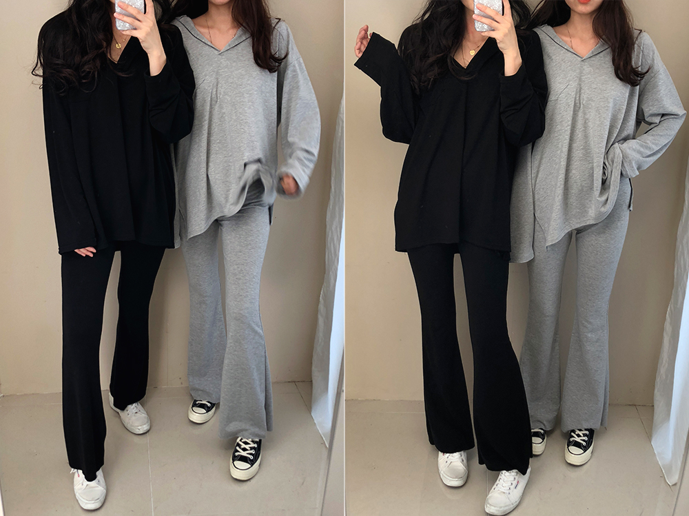 편하게 입기 좋은 후드 탑과 부츠컷 바지가 세트인