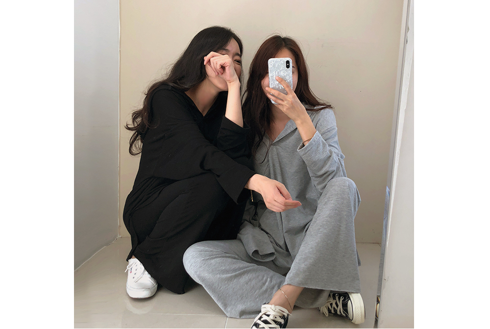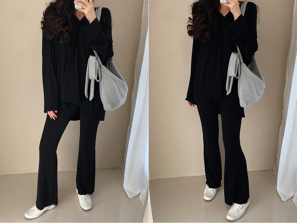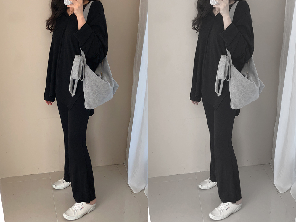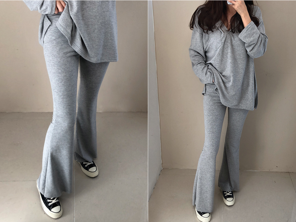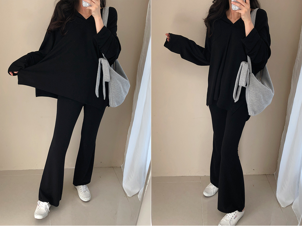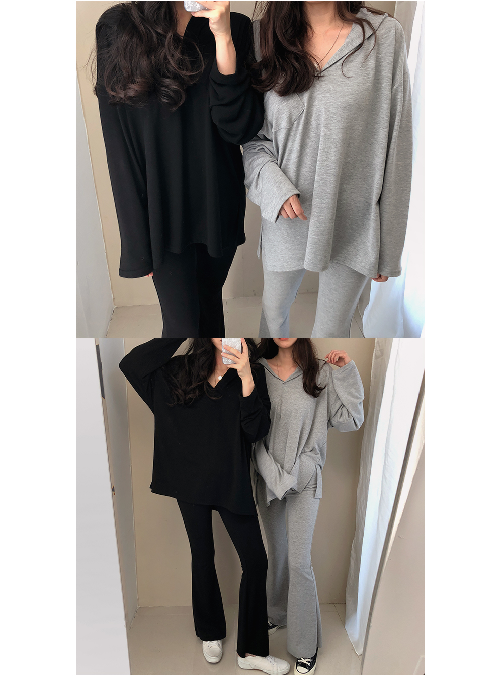 편하게 입기 좋은 후드 탑과 부츠컷 바지가 세트인