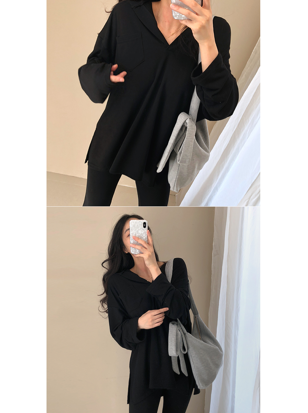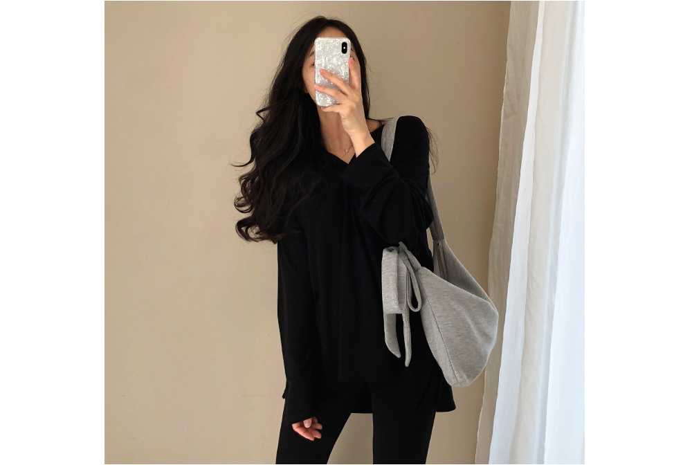 착용시 V넥으로 벌어지면서 쇄골라인은 좀 더 여릿해 보이고