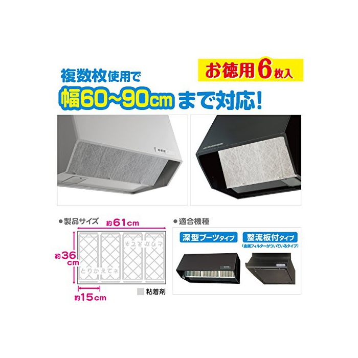 원본상품명: 東洋アルミ お?用6枚入パッと貼るだけ深型用フィルタ?60cm 2783