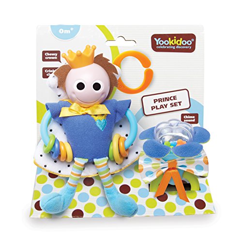 Baby Rattle and Teether Toy, Prince Edition- Teething Ring and Rattle Toy- Great for Early Motor Skill Development. Baby rattles provide tactile development, visual stimulation, and gross motor skill development for your child. This royal rattle set from Yookidoo will not only provide developmental stimulation for your child, but also keep them entertained and happy! This baby rattle set (2 Pack) harbors a teething ring and a prince figure with a rattle, crinkly coat, and sliding beads encourage your baby to play in a stimulating way. The prince with rain beads allows visual and tactile stimulation for babies as soon as they are born, while the easy to grab royal handle provides a variety of textures and colors to aid in gross motor skill development. This Yookidoo character will keep your little prince entertained and happy as they grow, develop, and learn.Feature