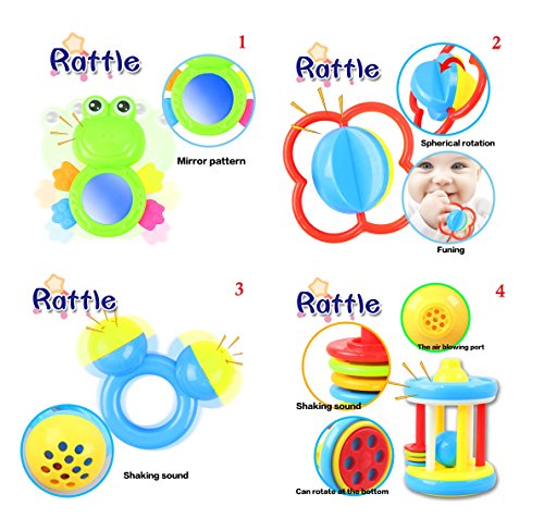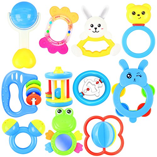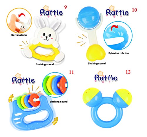 UNLIMITED FUN - This 12 piece set keeps your baby engrossed in a happy mood and helps them to improve upon their perception and body coordination skills. The distinct shapes, sizes, color and design prevents them from getting bored and prompts them to explore their rattling functionality.