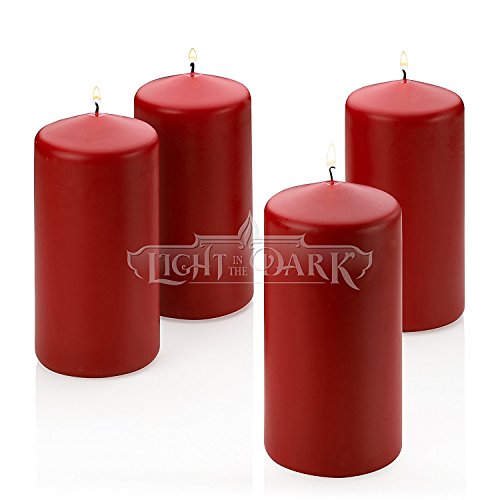 - 4 Red Pillar Candle 3x6 Unscented Burn Time 36 Hours