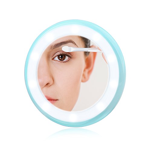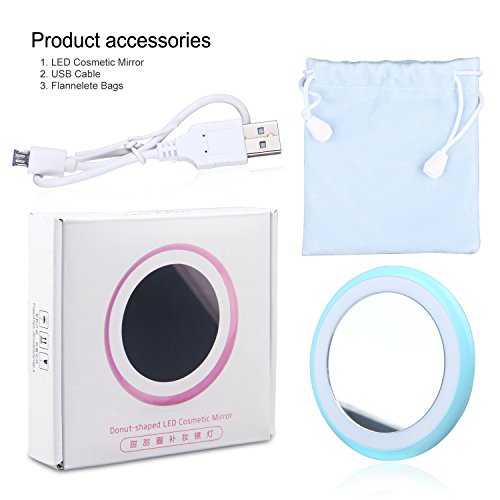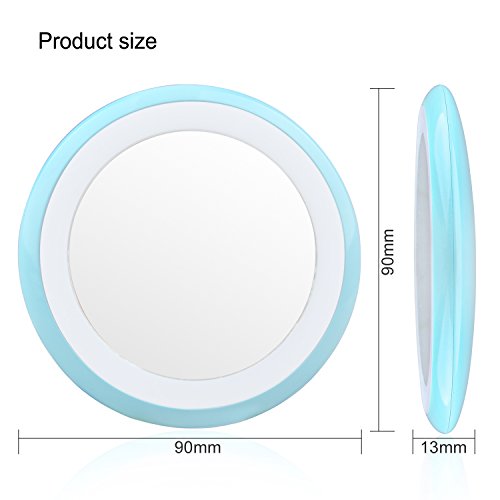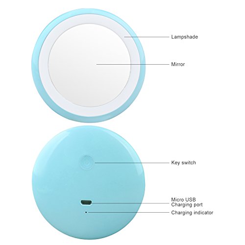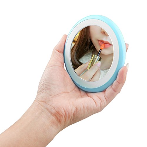 LED Lighted Rechargeable Compact Makeup Mirror for Purses, Konsait Travel Pocket Mirror with Lights and Pouch Bag for Hand Small Mirror (Blue)