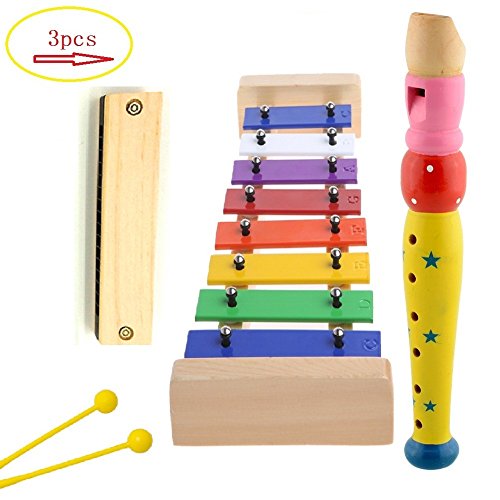 GREAT CHILDREN INSTRUMENT FOR YOUR YOUNG MUSICIANS Wooden Xylophone is crafted with 8 brightly-colored keys that have different sizes - great for helping your young musician visually learn by following the colors