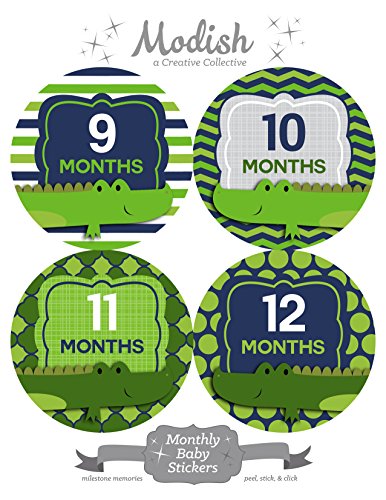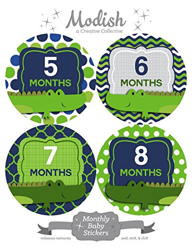 -. Title : 12 Monthly Baby Stickers, Alligators, Boy, Baby Belly Stickers, Monthly Onesie Stickers, First Year Stickers Months 1-12, Blue, Navy Blue, Green, Lime Green, Baby Boy