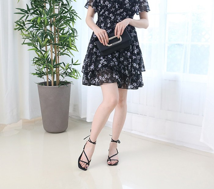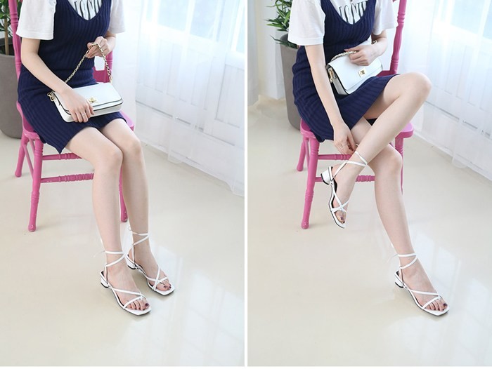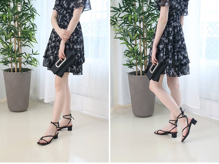 商品名:サンダル レディース 太ヒール ローヒール レースアップ 2018 夏 ファッション 靴 婦人靴