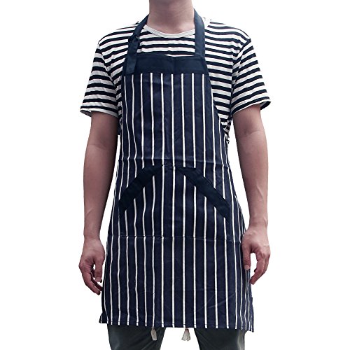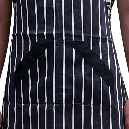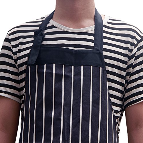 Ultra Useful Workshop Apron White Black Pinstripe Chef Bib Apron with Two Side Pocket Adjustable Waist Ties Kitchen Cooking Baking Grilling Pottery Tool Apron for Both Women Men HSW-020-002