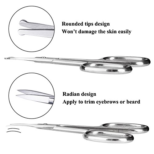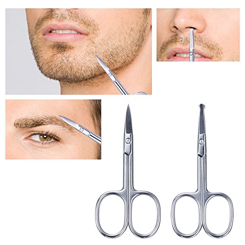 Nose Hair Scissors, LEOKOR Beard Eyebrow Mustache Scissors Trimmer Stainless Steel Safety Scissors Set