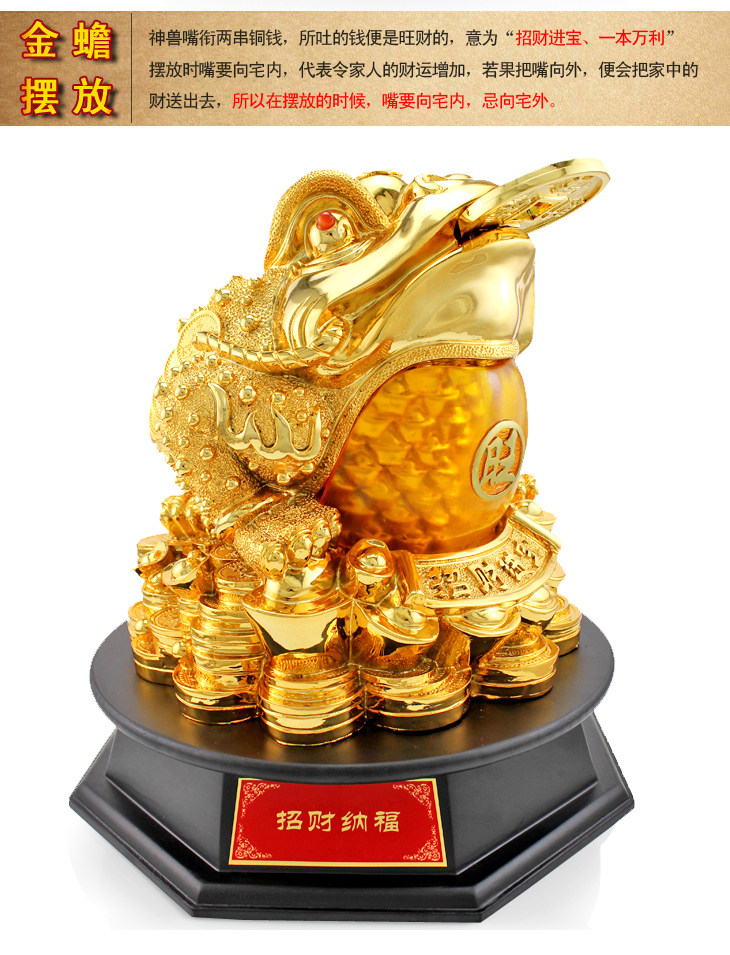 招财纳福开光三足金蟾大号 开业乔迁礼品金蟾蜍招财工艺品摆件
