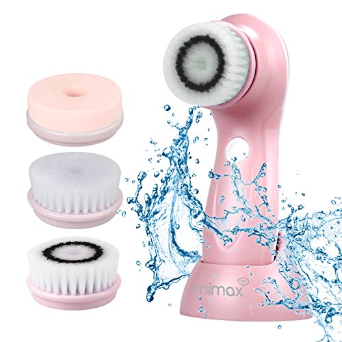 Mimax Facial Brush Electric Rechargeable Waterproof Brushing Kits 2 speeds For Skin Cleansing Exfoliating ,Facial Cleansing Benefits with 3 Brush Heads, Blackhead Remover.