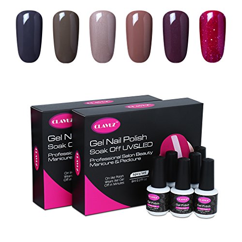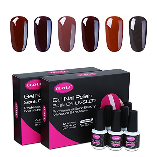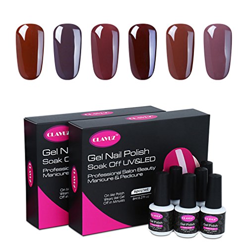 CLAVUZ Gel Nail Polish Set 6pcs Soak Off UV LED Nail Lacquer Nail Art Manicure Beauty Salon New Starter Gift Kit (Coffee Brown Set2)