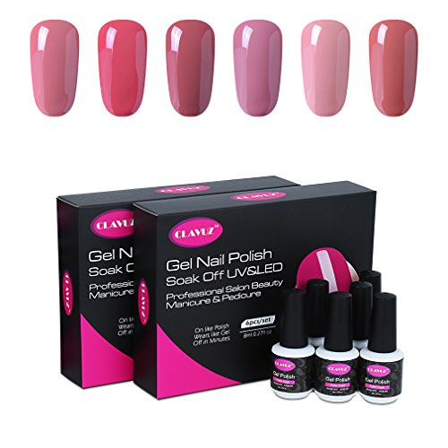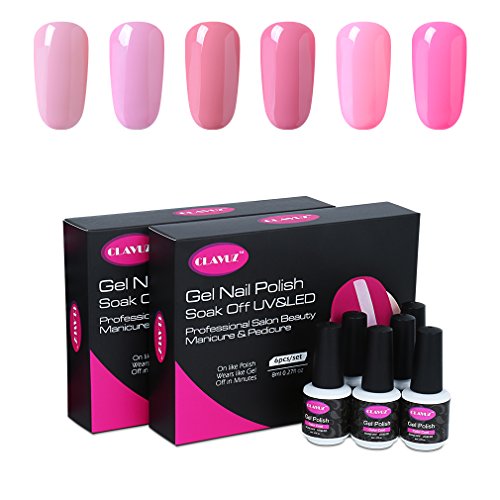 CLAVUZ Gel Nail Polish Kit 6pcs Soak Off Pink Gel Nail Lacquer Nail Art Manicure Beauty Salon New Starter Gift Set