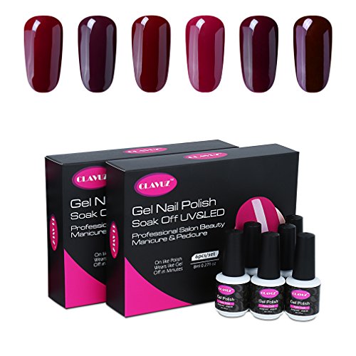 CLAVUZ Gel Nail Polish Set 6pcs Burgundy Nail Polish Soak Off Gel Lacquer Professional Salon Beauty Manicure New Starter Kit