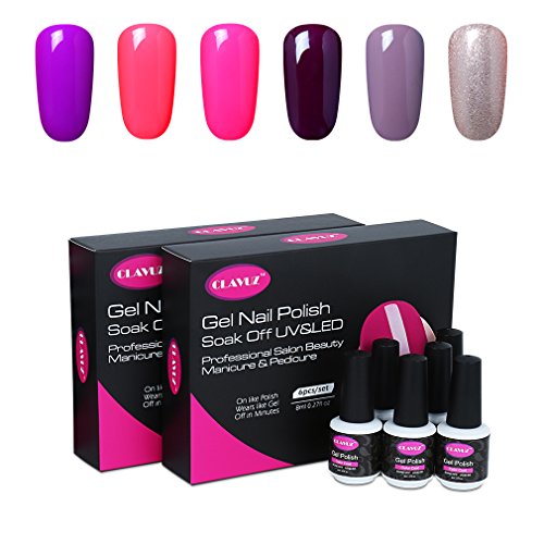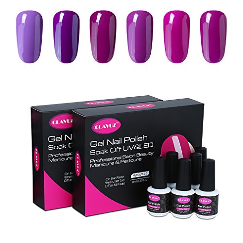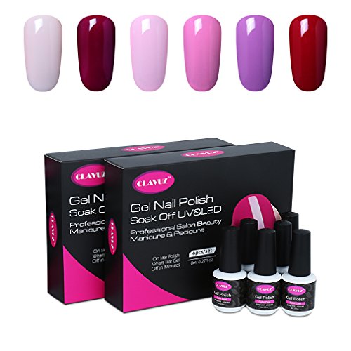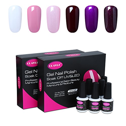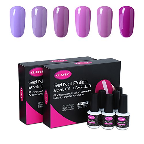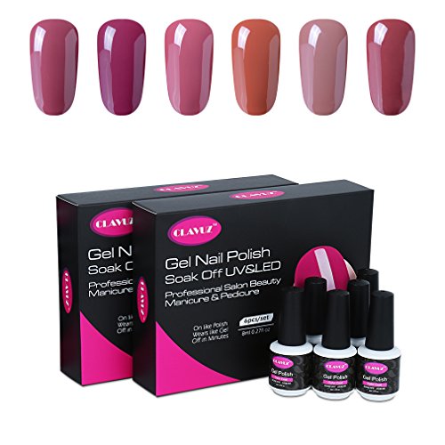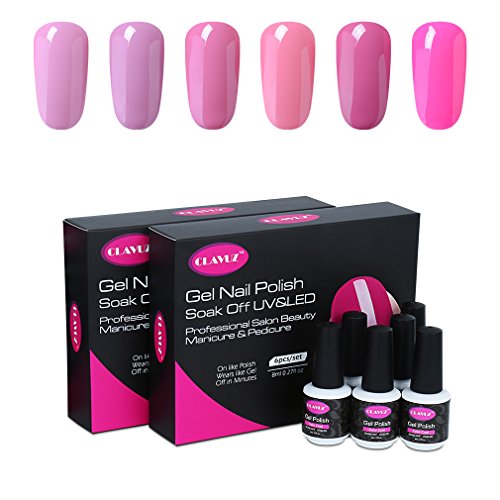 CLAVUZ Gel Nail Polish Kit 6pcs Soak Off UV LED Gel Nail Lacquer Pink Purple Nail Art Manicure New Starter Gift Set