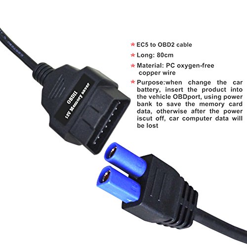 Memory Saver Connector 12V OBD II to EC5 Socket ECU Emergency Power Supply Cable OBD 2 Memory Saver Adapter,Memory Charger for Auto Car Battery Power Charger Booster