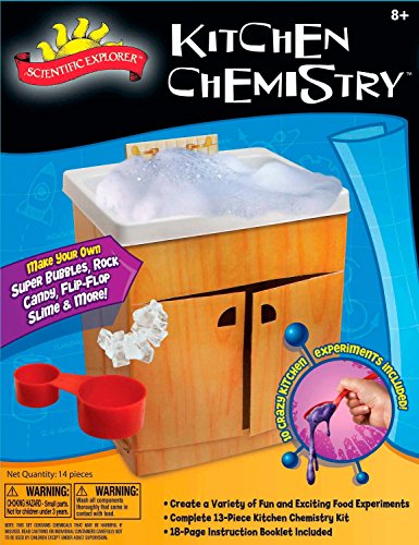 -. Feature : Safe and fun way to explore chemistry without blowing up the house / This kit uses common household substances to make fun things / Complete with a miniature kitchen sink to mix and store your stuff in! / Explore the science behind the food we eat and the substances we use in our homes every day / Includes (10) experiments that turn bones to rubber, make rock candy, gooey slime and other crazy kitchen creations