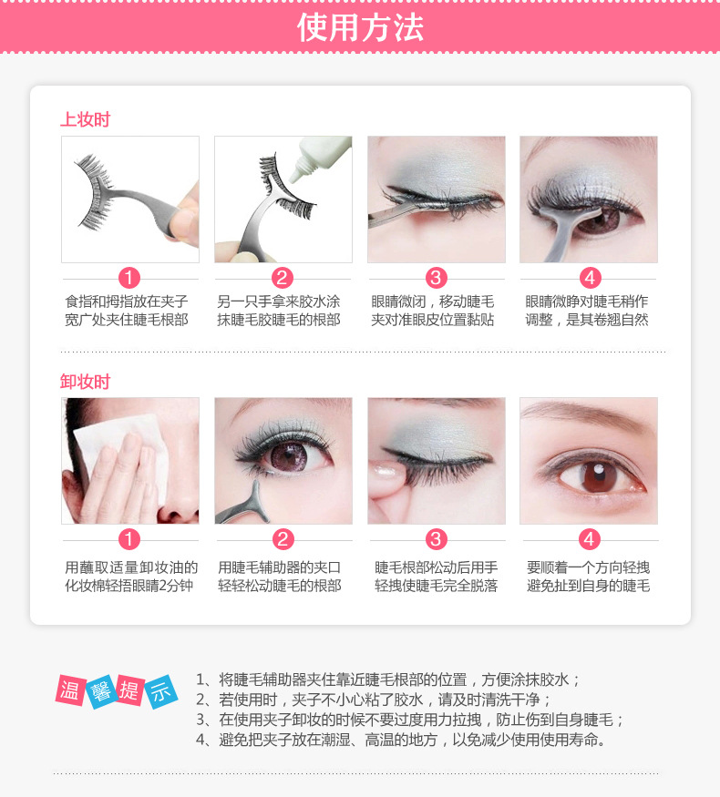 1. Lash the eyelash assistor near the base of the eyelashes to facilitate application of the glue
