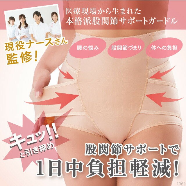 「腰の鉢巻き」で股関節周りを引き締めて正しい歩行をつくる補整ベルト一体型ガードルです。
