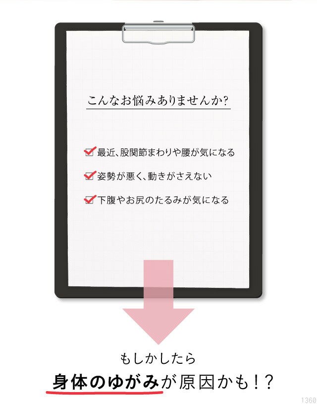 この歪み・ねじれは腰や脚に負担をかけるだけでなく、身体を疲れやすい状態にしてしまいます。