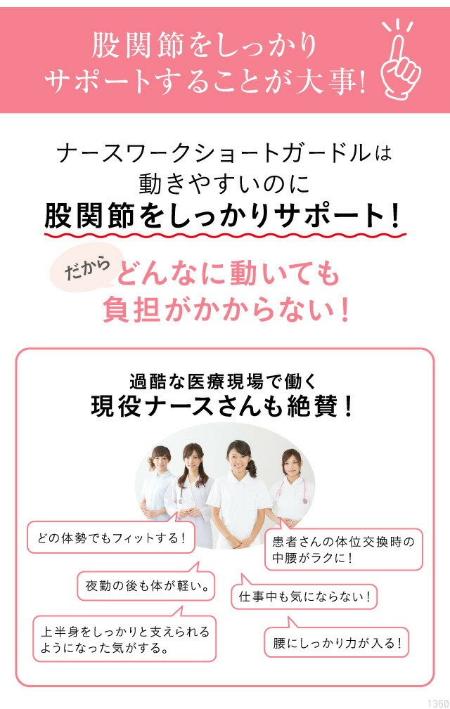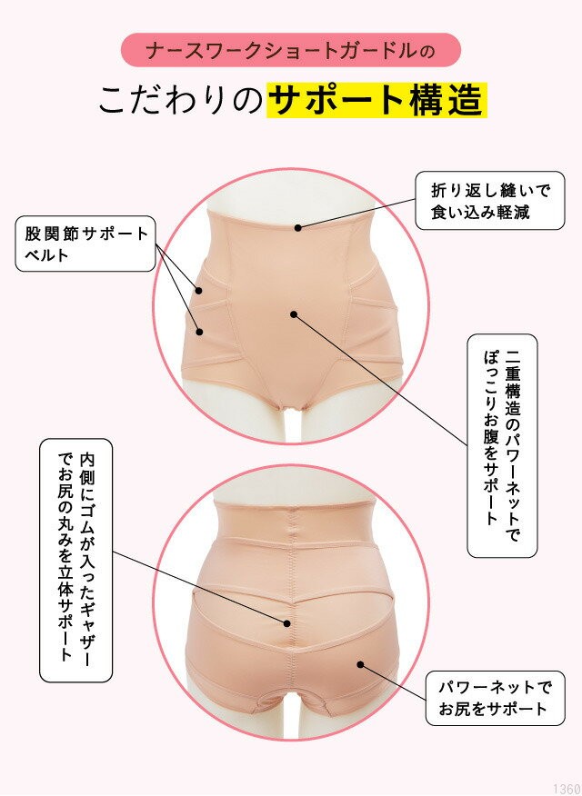 現役看護師さん10人の声を元に考えた体が疲れにくいショートタイプガードル。