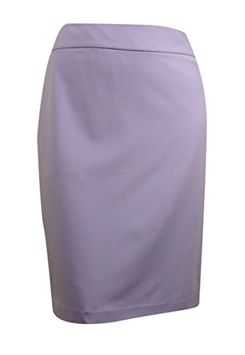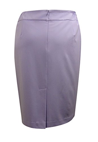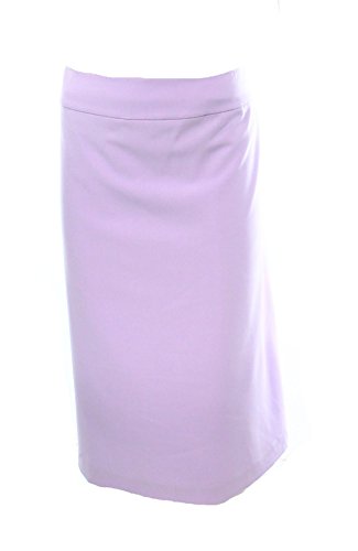 Solid pencil skirt in poly-stretch fabrication featuring banded waist and center back slit