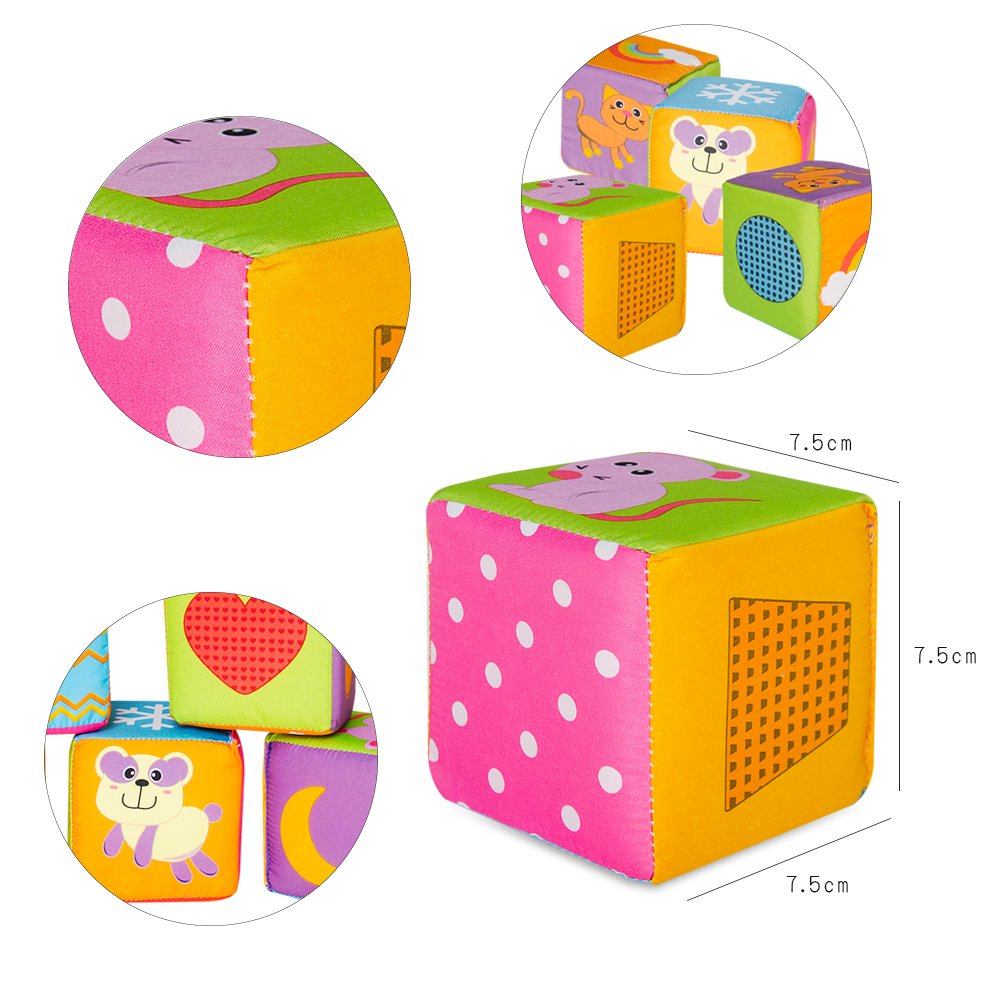 The six sides of the toy body have different relief patterns, and when the child shakes, stacks, rolls, it can learn the basic concept of the shape naturally while confirming color, number, animal consciousness.