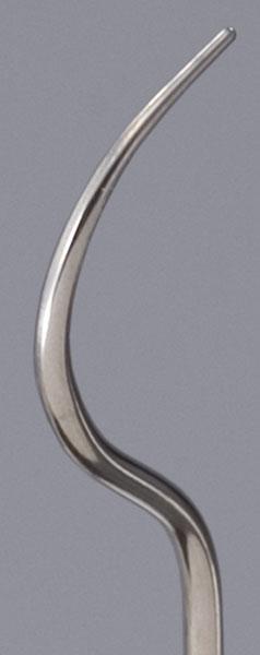 | 軽くこするだけで、歯に付着した歯垢やヤニ取りに力を発揮する、2種類のピックを両端にもっている歯の清掃具です。細い刃先のピックは、歯間部にはさまった食べかす、付着した歯垢等の除去に。平たい刃先のピックは、平らな面の表面の歯垢を効果的に除去してくれます。 ピックは、歯の裏側の歯垢を除去しやすい湾曲形状です。 |